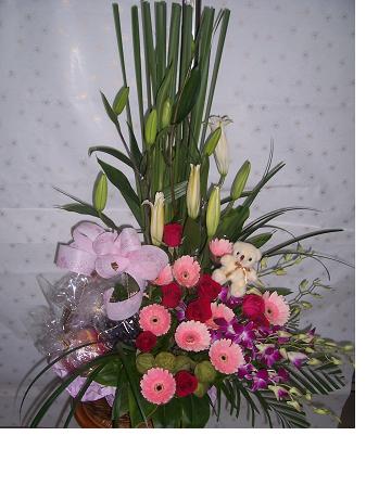 提供花束、盆花、花籃、藝術高架花、蘭花.及代客送花。